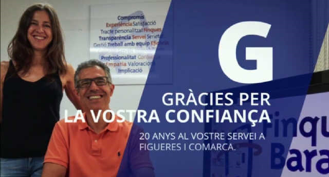 20 años a vuestro servicio en Figueres y comarca Compromiso, experiencia y vocación de servicio. Trato personalizado. Eficacia y profesionalidad. Implicación, garantía y asesoramiento inmobiliario. 28/01/2021